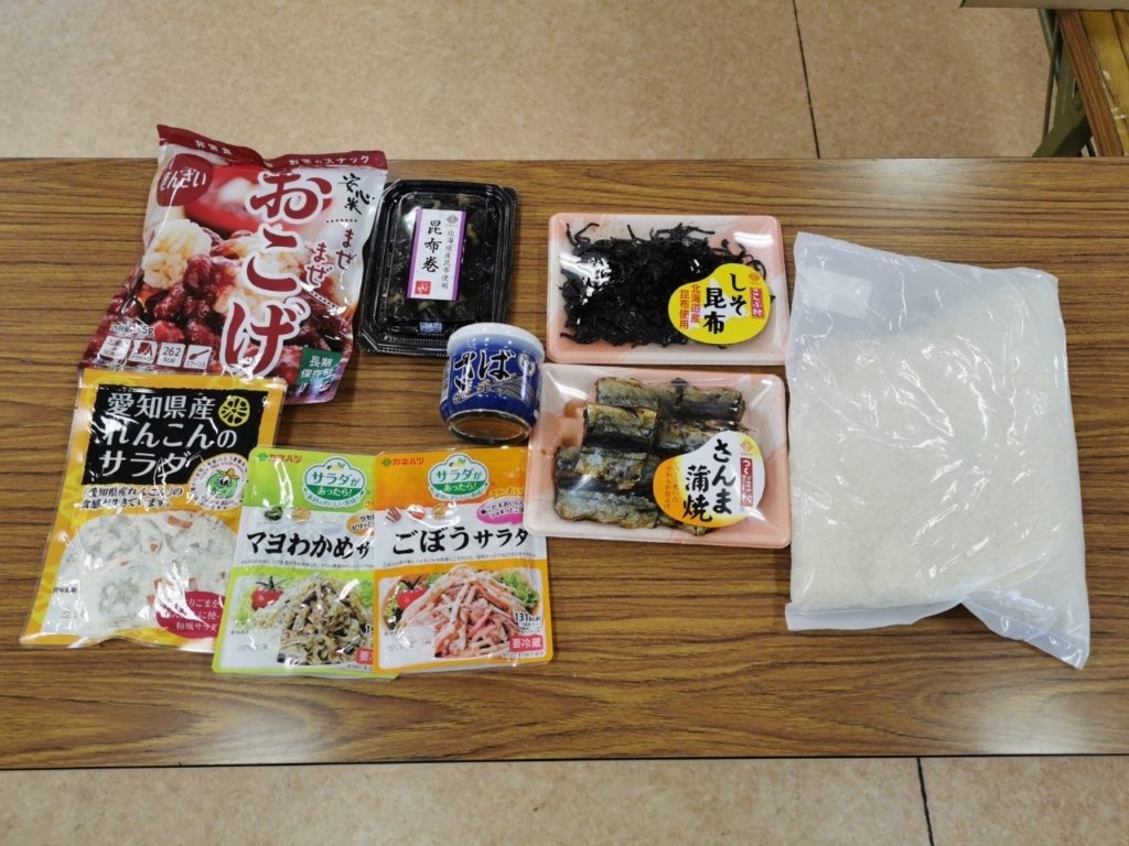 毎回提供くださるカネハツ食品株式会社さまよりお惣菜を、瑞穂社会福祉協議会さまよりレトルトカレーとぜんざいをいただきました!