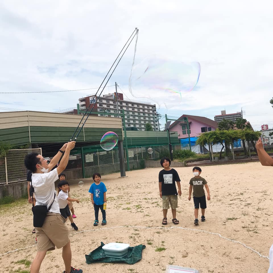nagoya free shabon さんにお越しいただき、こどもたちと一緒にシャボン玉で遊んでもらいました!